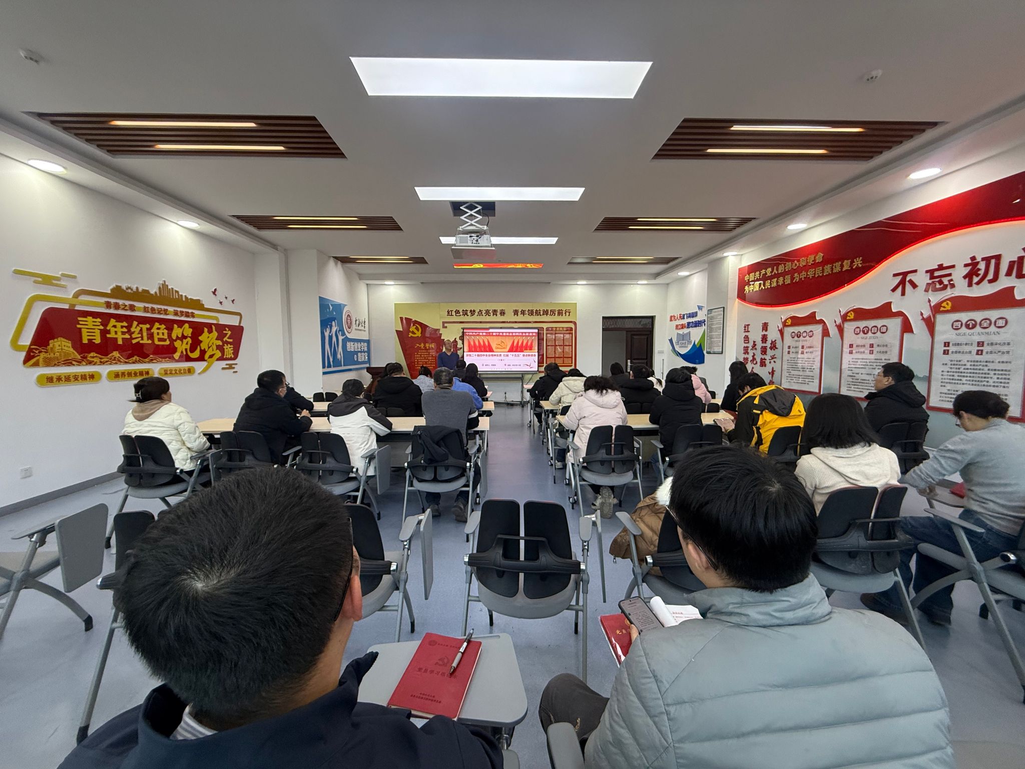 宣讲中,高书记紧扣党的二十届四中全会精神核心要义,从党的四中全会内涵是什么、总书记为何如此重视“十五五”规划编制、“十四五”我们交出了怎样的答卷、二十届四中全会究竟擘画了怎样的未来蓝图和贯彻落实党的二十届四中全会精神的实践路径5方面,对全会精神作了全面宣讲和系统阐释。他指出,党的二十届四中全会是在以中国式现代化全面推进强国建设、民族复兴伟业的关键时期召开的一次十分重要的会议。学习好宣传好贯彻好全会精神是当前和今后一个时期学校的重大政治任务。全体党员要掌握全会对教育科技人才工作的部署安排,要聚焦教育教学、双创人才培养内涵建设,凝聚学院发展合力。