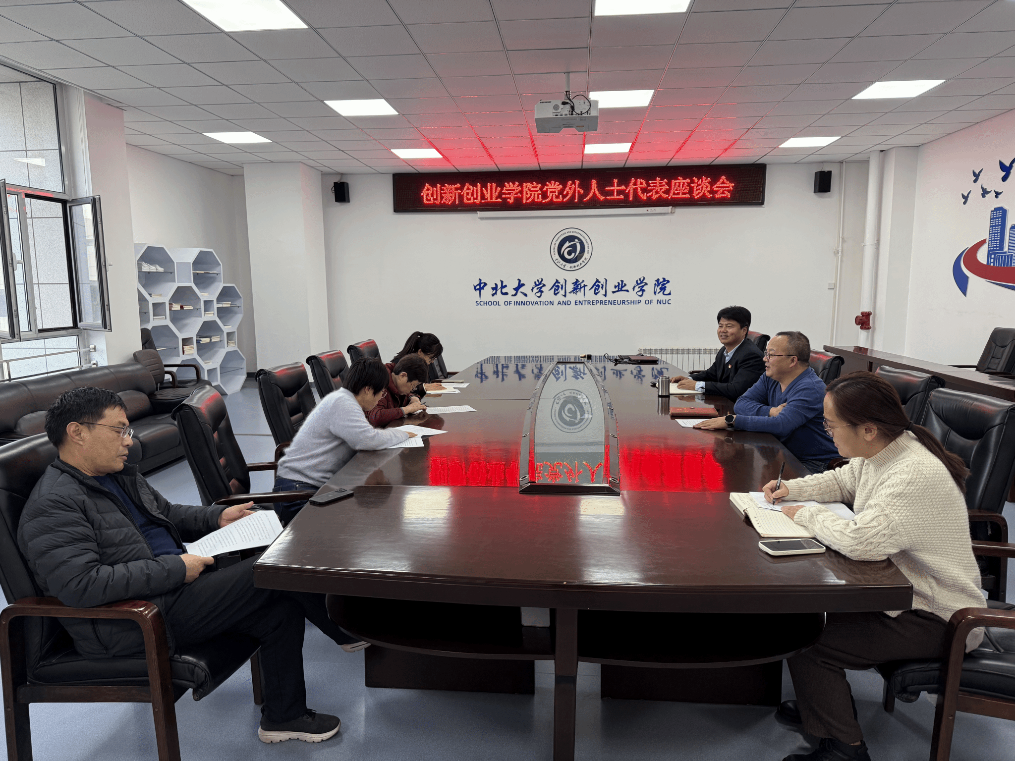 2025年12月4日,创新创业学院召开党外人士代表座谈会,学院党总支书记高春强、院长曹凤才及党外人士代表参加会议。会议由高春强书记主持。